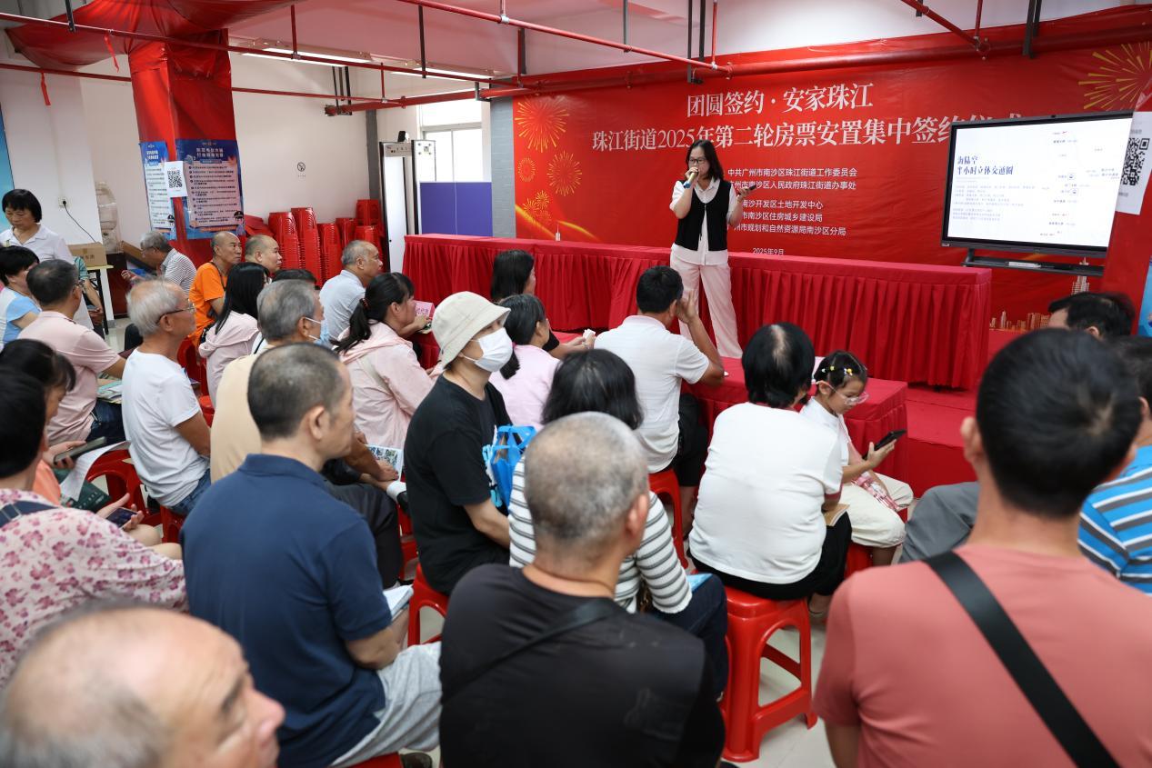 活动伊始,珠江街工作人员围绕《珠江街道2025年第二轮房票安置方案》,就居民最关心的房票面值构成、使用期限、兑现规则等关键流程进行了简明扼要的再解读。